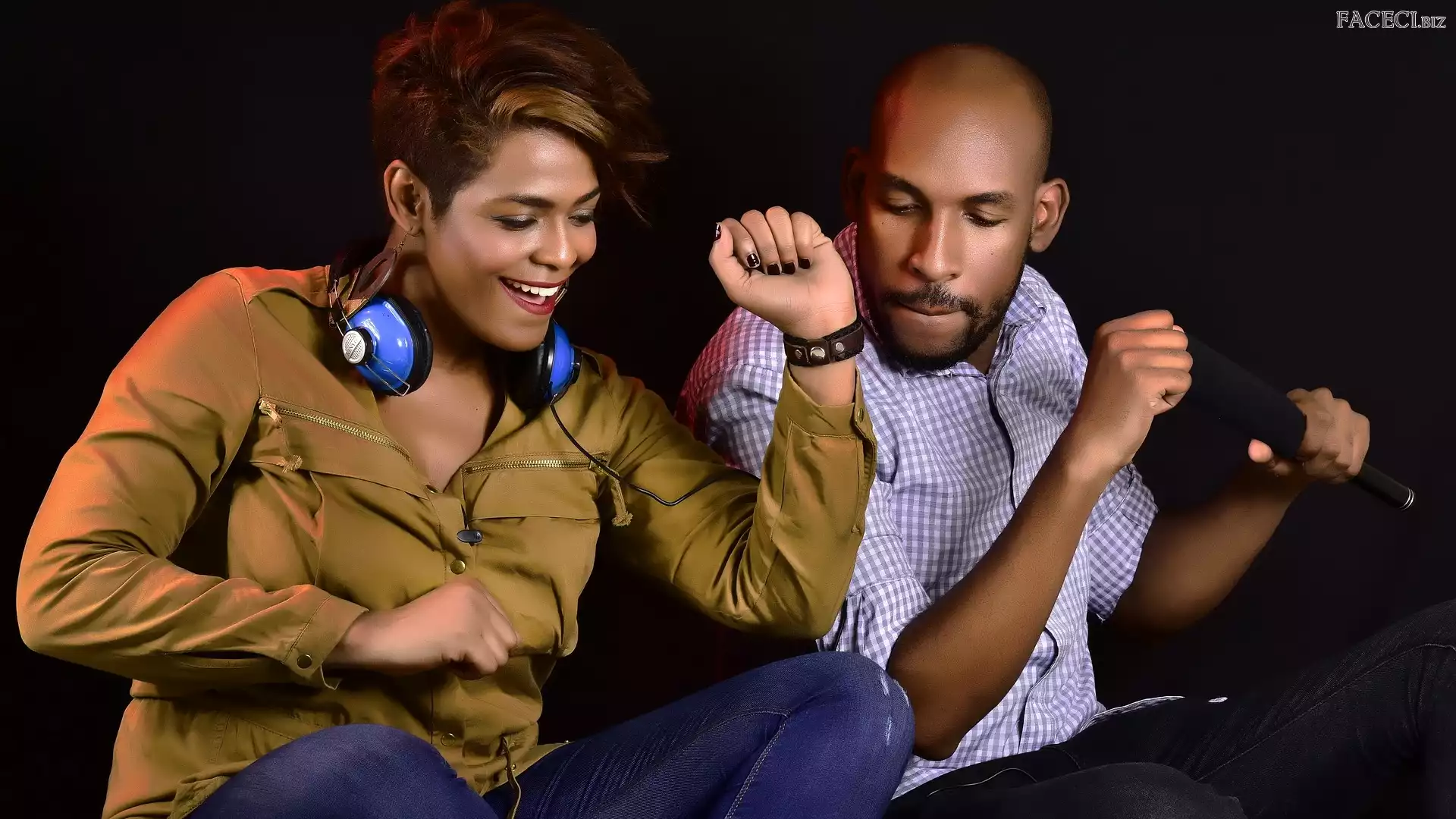 Mężczyzna, Mikrofon, Kobieta, Słuchawki - faceci.biz