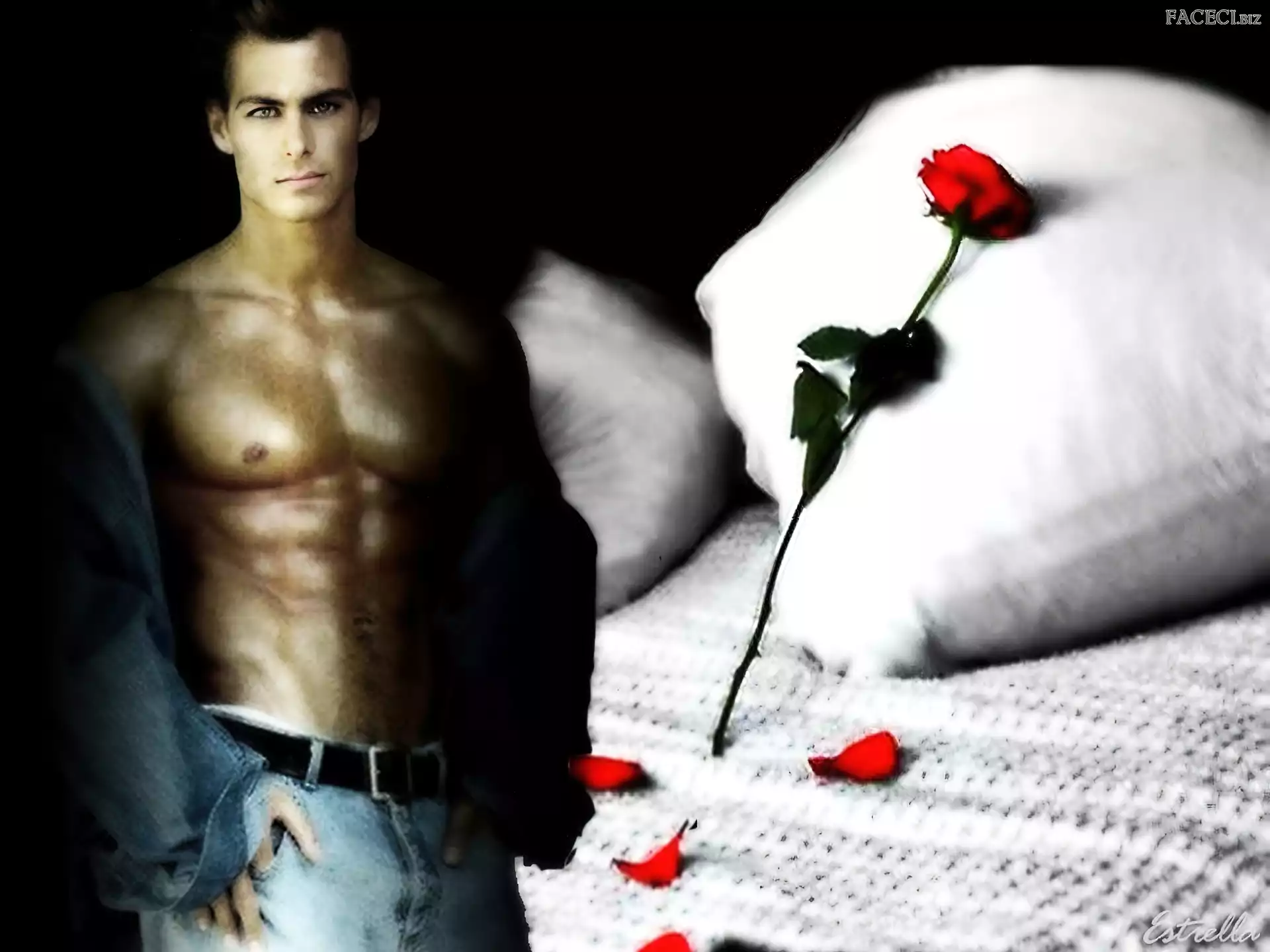 Poduszka, Płatki, Mężczyzna, Róża - faceci.biz